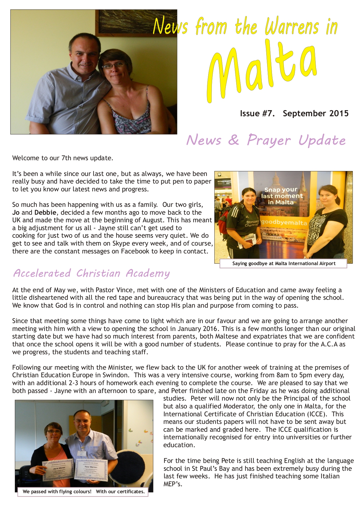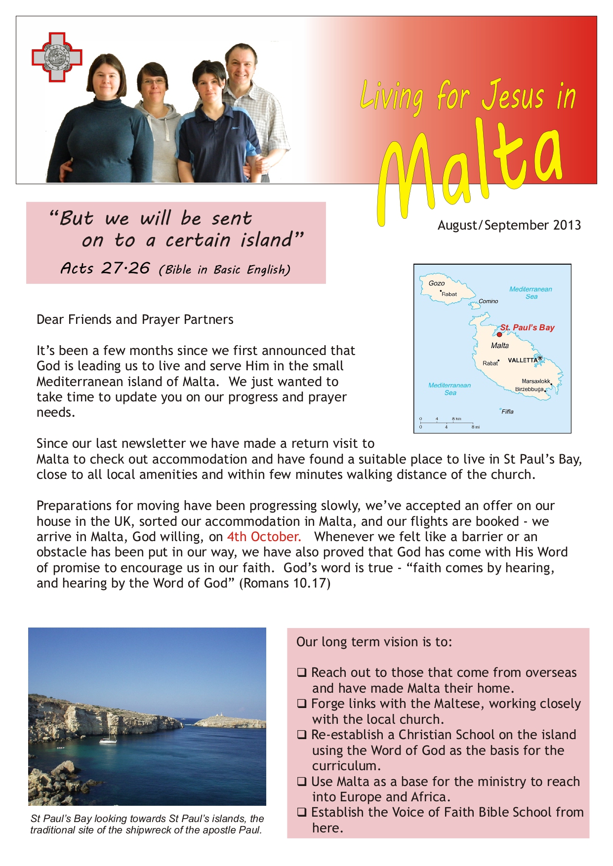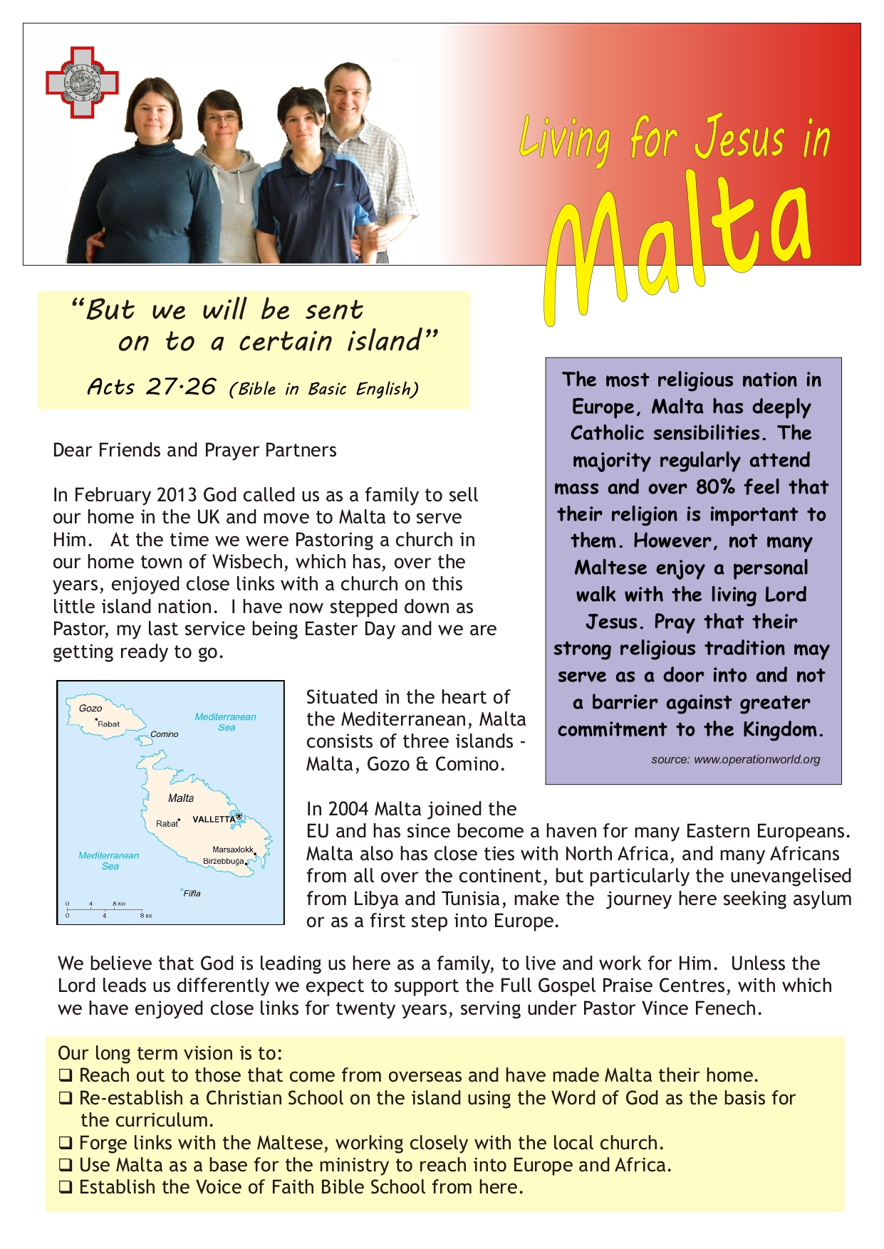 Through the years 2013-2019 we were living and serving the Lord in Malta,