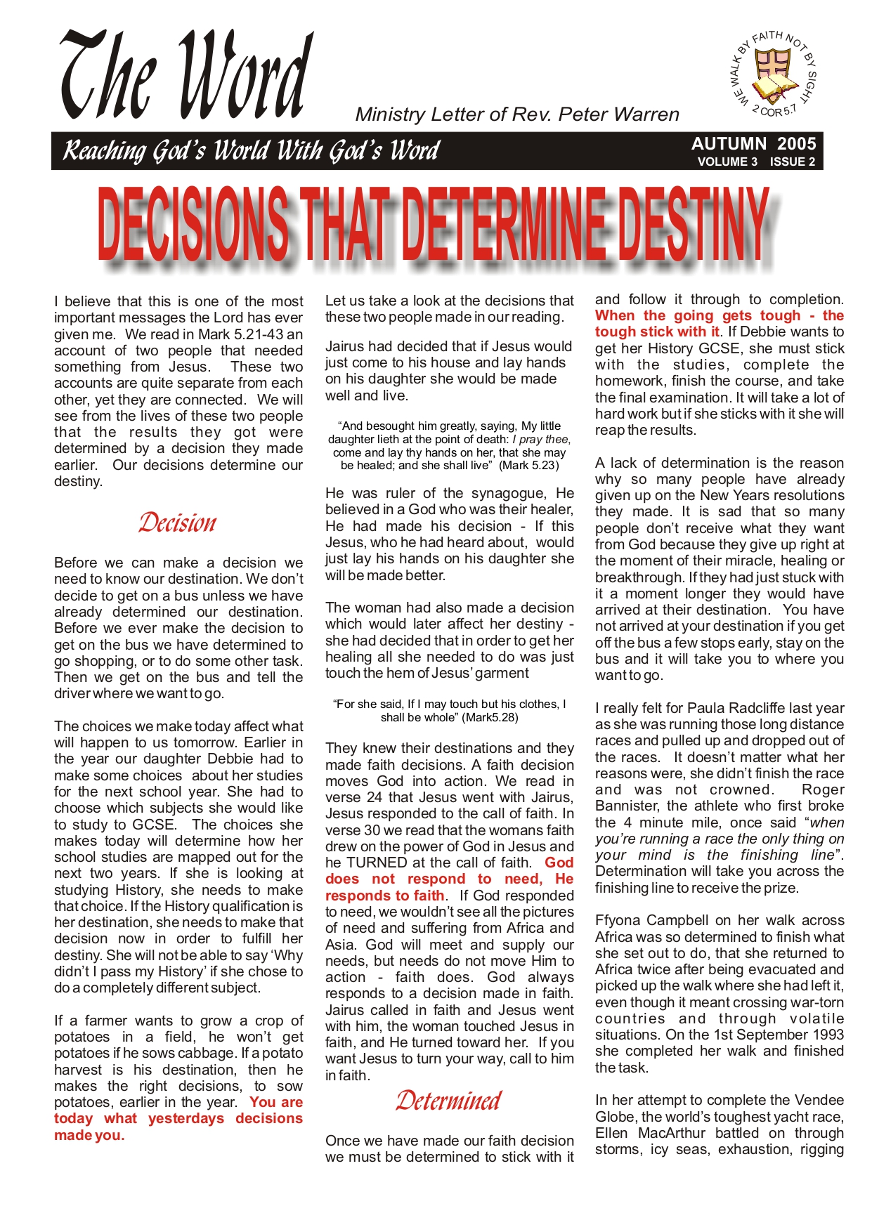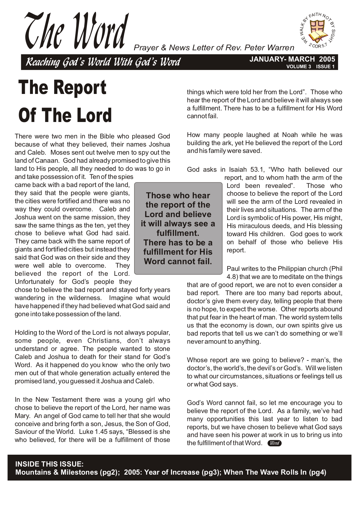 The Voice of Faith magazine is not currently in production - it was produced in the years 2005-2007. We