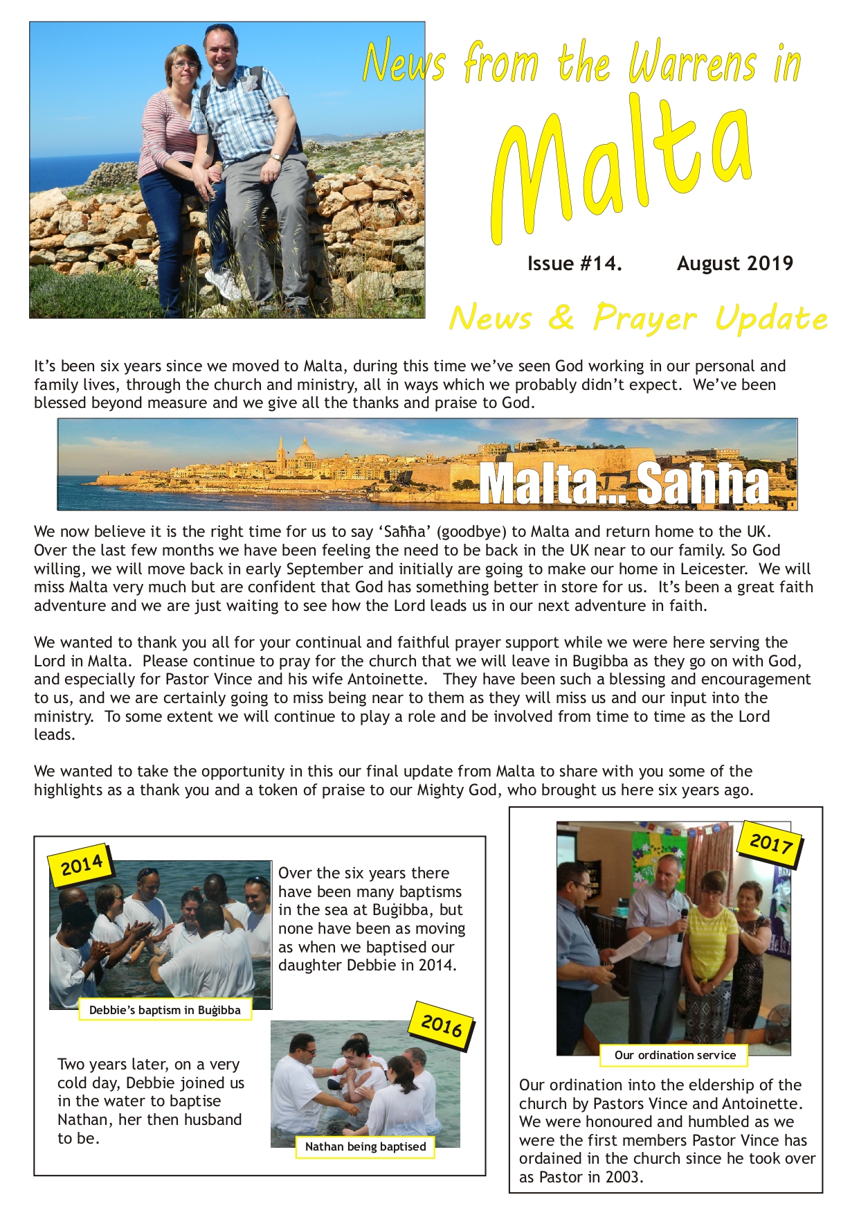 Through the years 2013-2019 we were living and serving the Lord in Malta,
